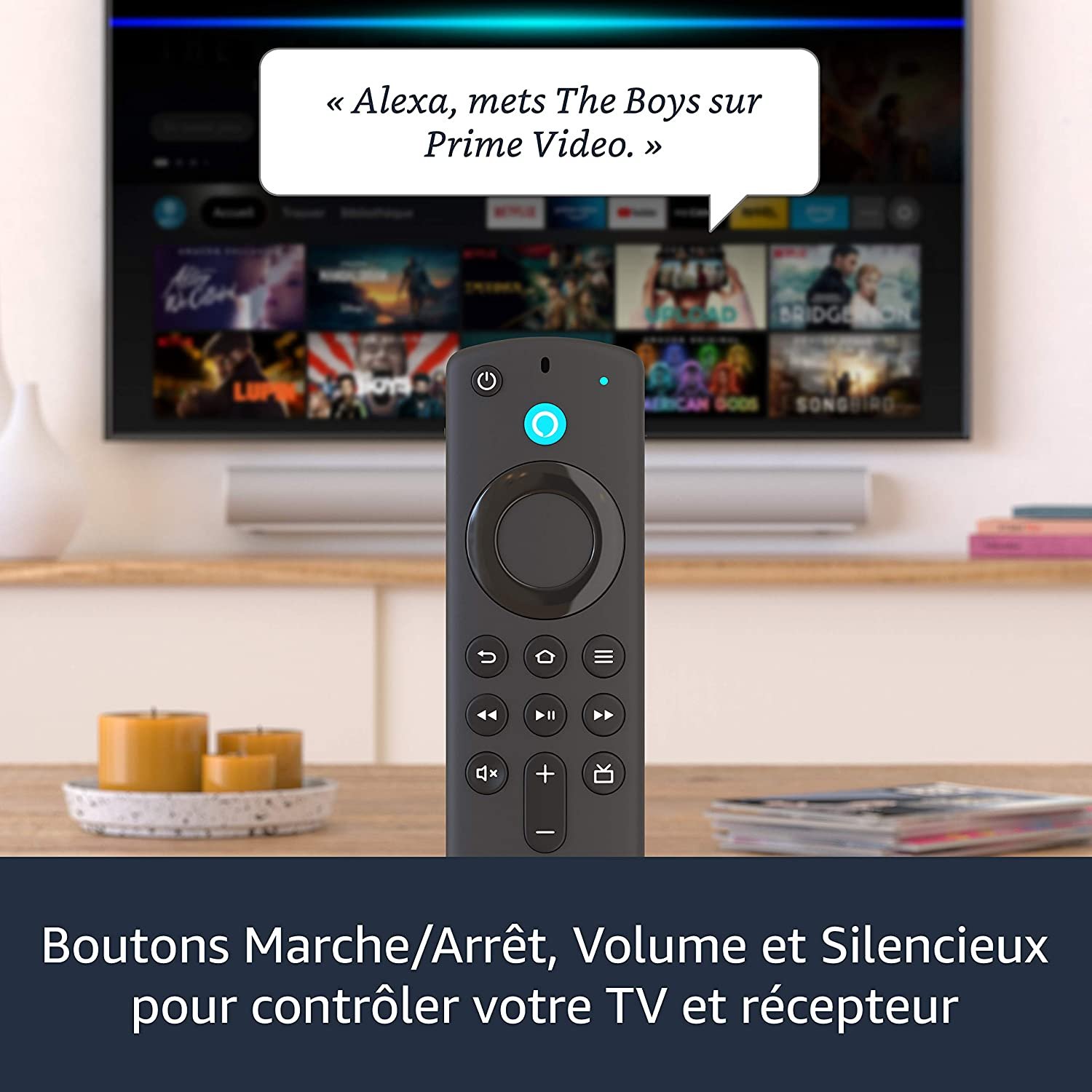 - Moins d’encombrement, plus de contrôle : la télécommande vocale Alexa vous permet d’utiliser votre voix pour rechercher et lancer du contenu à partir de plusieurs applications. Les nouveaux boutons prédéfinis vous permettent d’accéder rapidement à vos applications préférées. Vous pouvez également contrôler la mise sous/hors tension et le volume de votre TV et barre de son compatibles, sans télécommande supplémentaire.