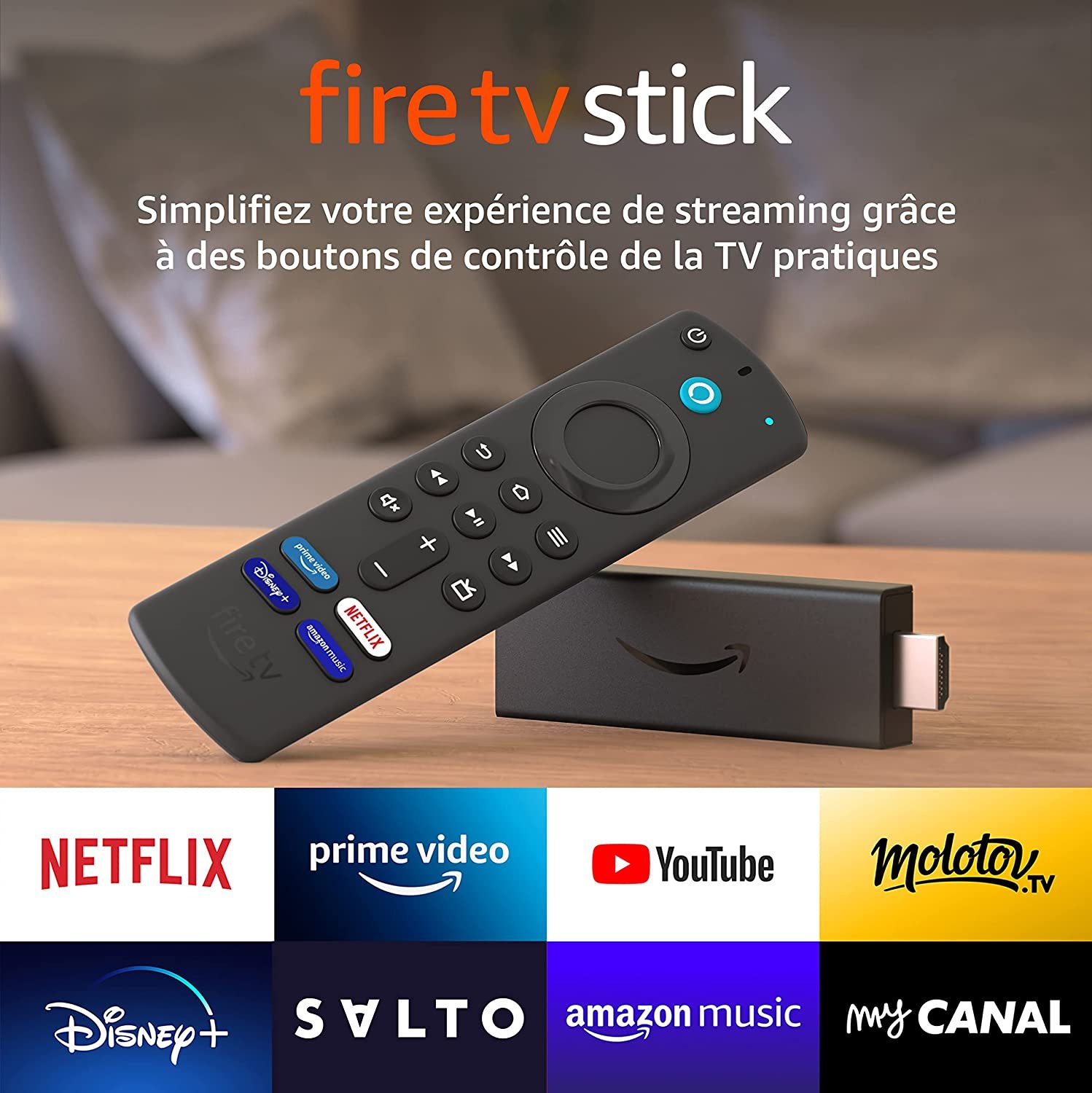 - Amazon Fire TV Stick Écoutez de la musique : écoutez des titres en streaming sur Amazon Music, Spotify, Deezer et bien plus. Des frais d’abonnement peuvent s’appliquer.