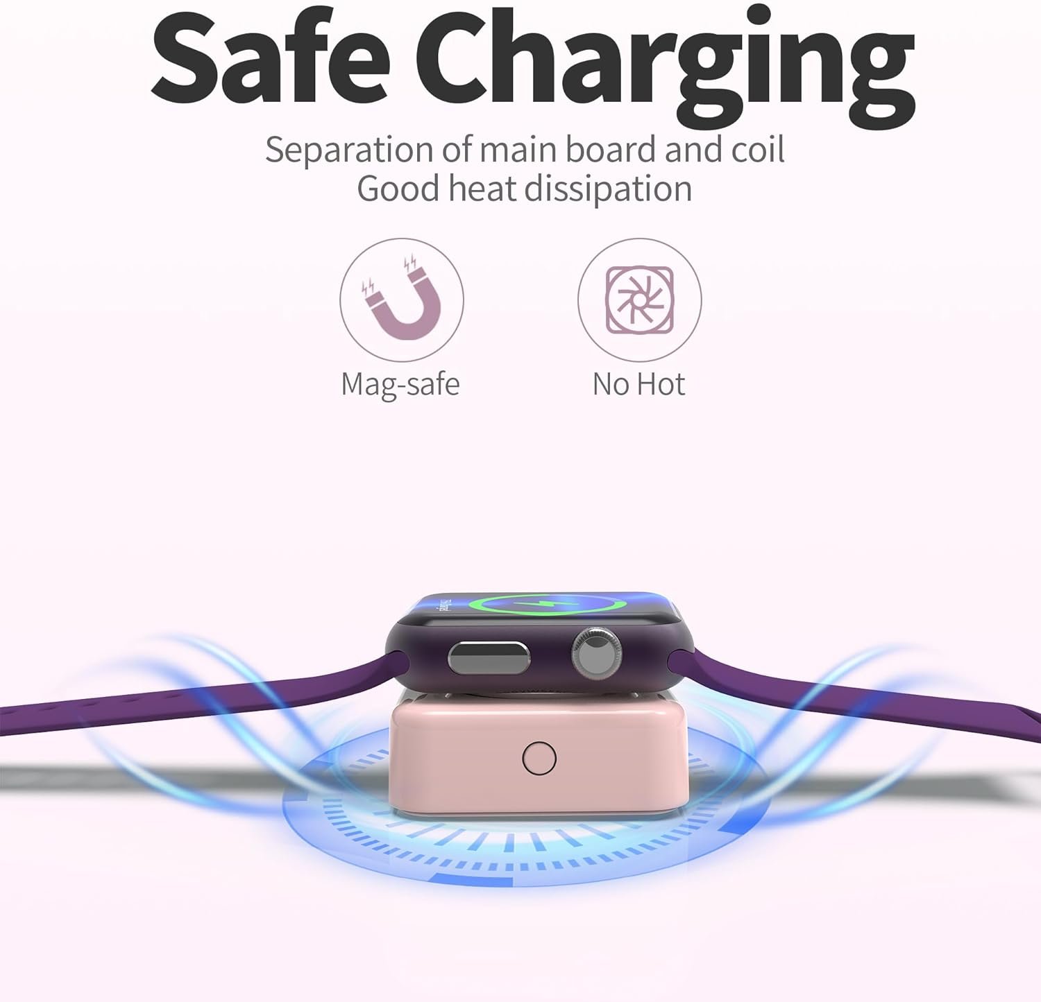 CHARGEMENT SÉCURISÉ : la batterie portable pour Apple Watch est dotée d’une protection contre les surintensités, les surtensions, les courts-circuits et la surchauffe. Vous n’avez pas besoin de vous protéger à côté du chargeur, l’ensemble du processus restera un fonctionnement sûr et stable.
