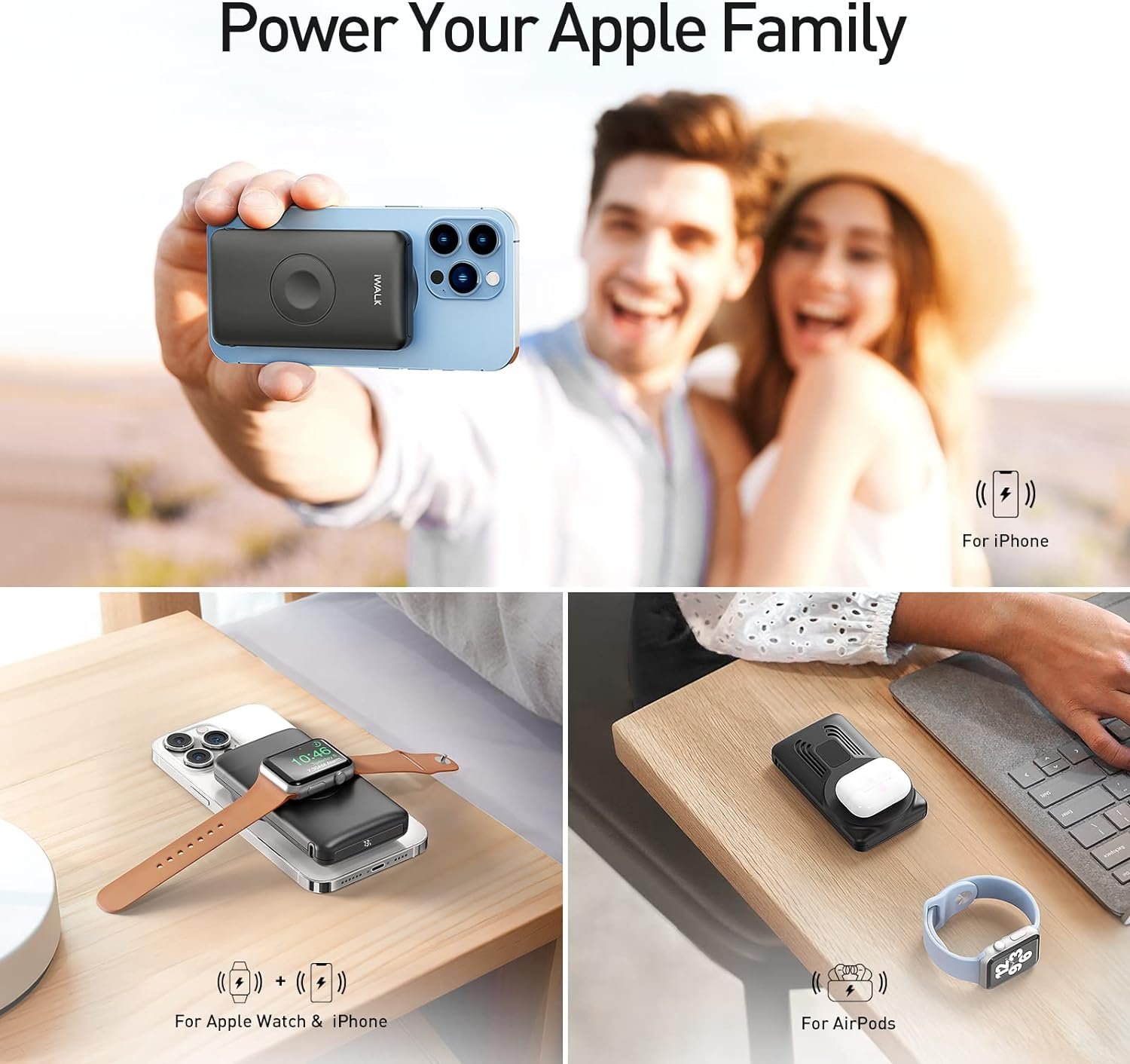 ✅【Facile à charger】Les aimants puissants intégrés vous permettent de clipser et de charger les iPhone 15, 14, 13 et 12 compatibles avec MagSafe. Pendant le chargement, vous pouvez prendre des selfies avec le pack bien collé à votre téléphone, librement et sans effort.
