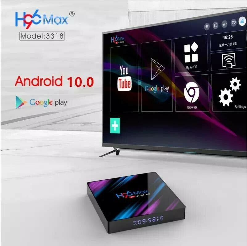 H96 Max Smart Android TV Box Android 10, peut transformer votre téléviseur et moniteur LCD traditionnels en un centre multimédia en se connectant à Internet (via WiFi ou RJ45). Cette Smart Android TV Box vous apportera beaucoup de plaisir et de commodité avec sa fonctionnalité puissante: Android 10.0, 4 Go de RAM + 32 Go ROM/ 4K de décodage de matériel vidéo 5G WiFi, BT5.0. Branchez-le simplement sur votre téléviseur et vous êtes prêt à partir!