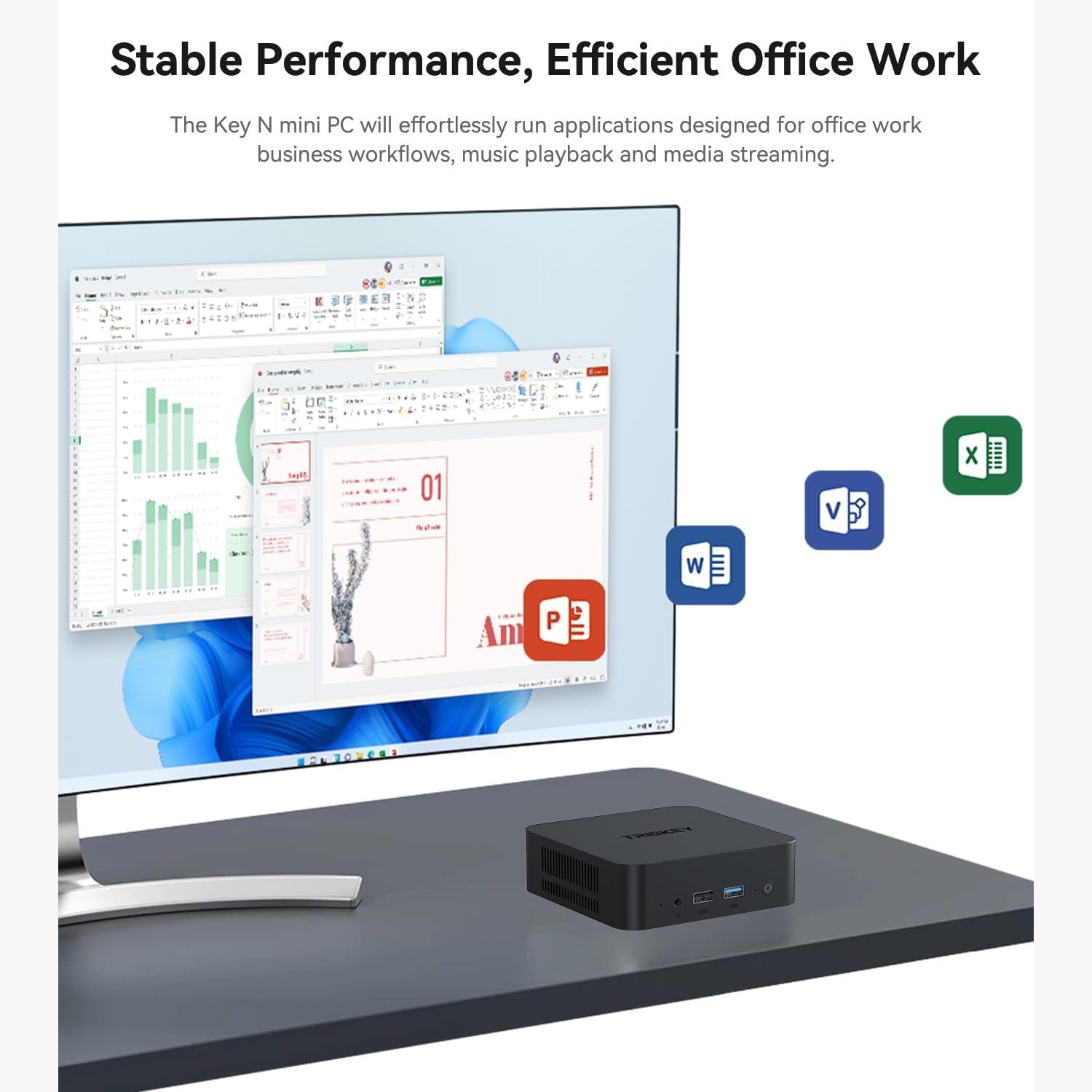 Processeur Intel Alder Lake N95 : Le TRIGKEY Key N95 est équipé d’un processeur Intel Alder Lake N95, avec une fréquence turbo maximale de 3,4 GHz (4 cœurs/4 taux). Il offre de meilleures fonctionnalités et une consommation d’énergie réduite. Il vous offre une expérience plus stable et fluide. Ce mini PC de bureau léger peut être utilisé pour le travail quotidien, la lecture de vidéos 4K, la navigation Web, l’apprentissage, etc.