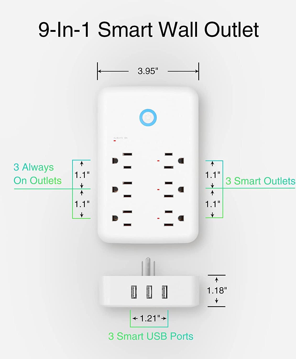 - Gadgets Smart Home 9 en 1 : la barrette d’alimentation intelligente multifonction Alexa comprend 3 prises intelligentes (jusqu’à 15 A), 3 ports USB intelligents (5 V/3 A) et 3 prises toujours allumées (jusqu’à 15 A) pour répondre aux besoins. d’alimentation continue. La conception multiprise convient à la cuisine, à la chambre à coucher, au bureau et aux voyages.