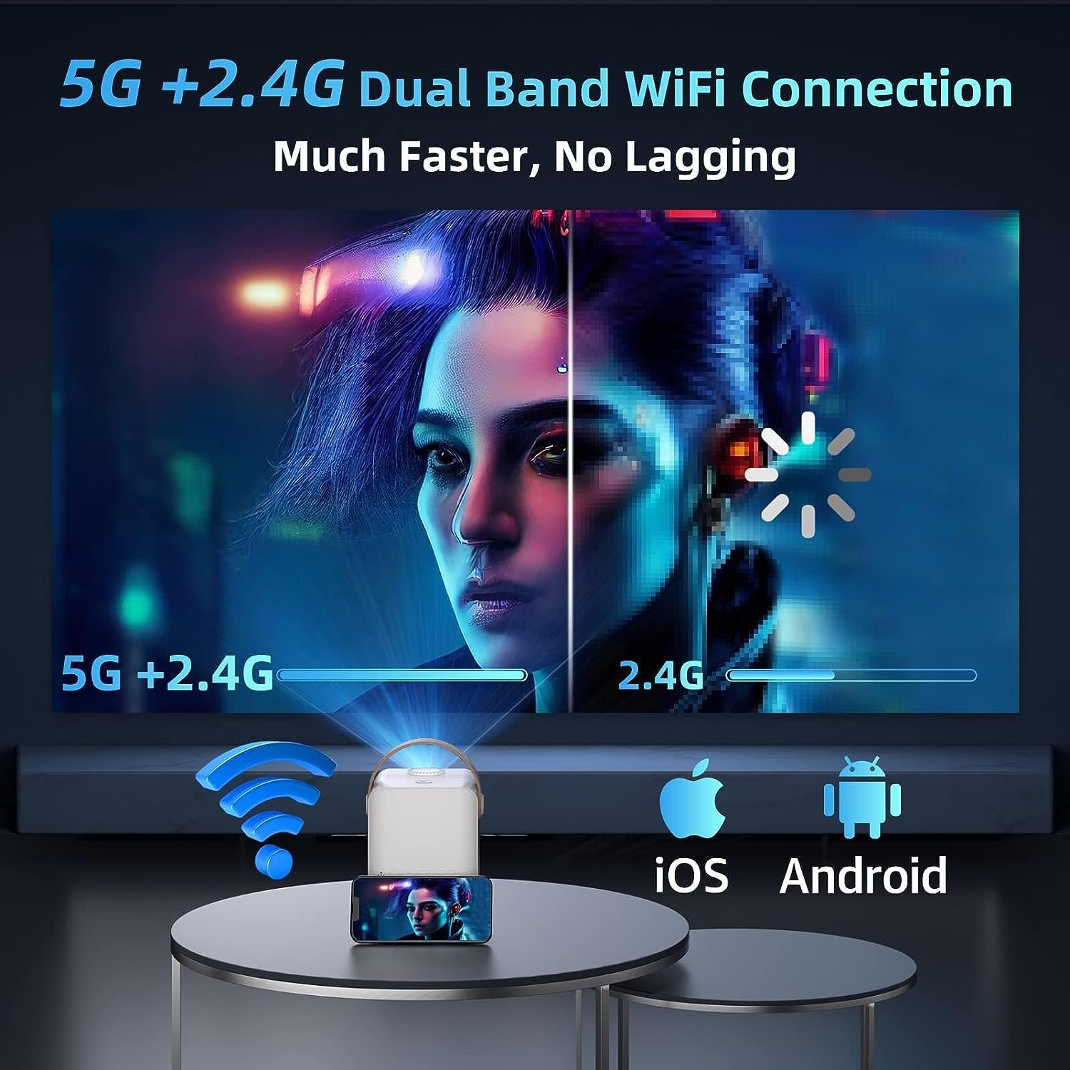 👍Projecteur Android 4K【WiFi 2,4G + 5G ultra rapide et stable】Le projecteur WiFi Sainyer est équipé du dernier WiFi 5G + 2,4G, idéal pour la mise en miroir d’écran de smartphone iOS et Android. Le WLAN 5G ultra-rapide amélioré vous garantit de profiter d’une expérience de visionnage sans décalage pendant que vous miracastez vos jeux sur smartphone, Tiktok ou d’autres vidéos de téléphone via notre vidéoprojecteur.