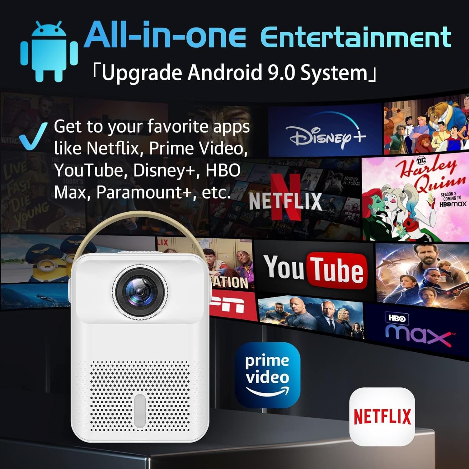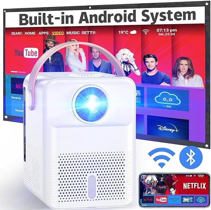 Projecteur Android 4K | mini projecteur 15 000 lumens avec WiFi et Bluetooth, intérieur et extérieur 4K max 300″ numérique ± 45 °, zoom Keystone 4D, compatible avec téléphone, clé TV, jeu, USB, Box tv Android, box iptv.