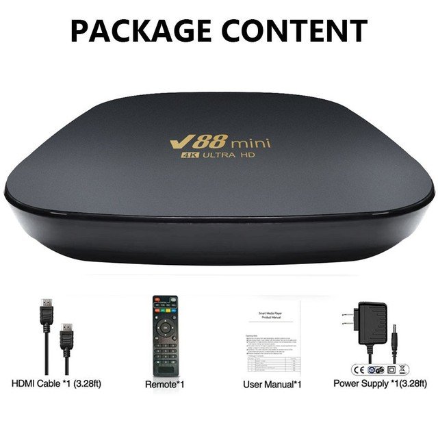 V88 Mini TV Box Prend en charge la version HDMI 2.0, pratique pour diffuser vos photos, films sur l’écran du téléviseur. La connexion WIFI 2.5G offre un signal sans fil plus stable pour que vous puissiez profiter des médias HD et jouer à l’expérience de jeu.