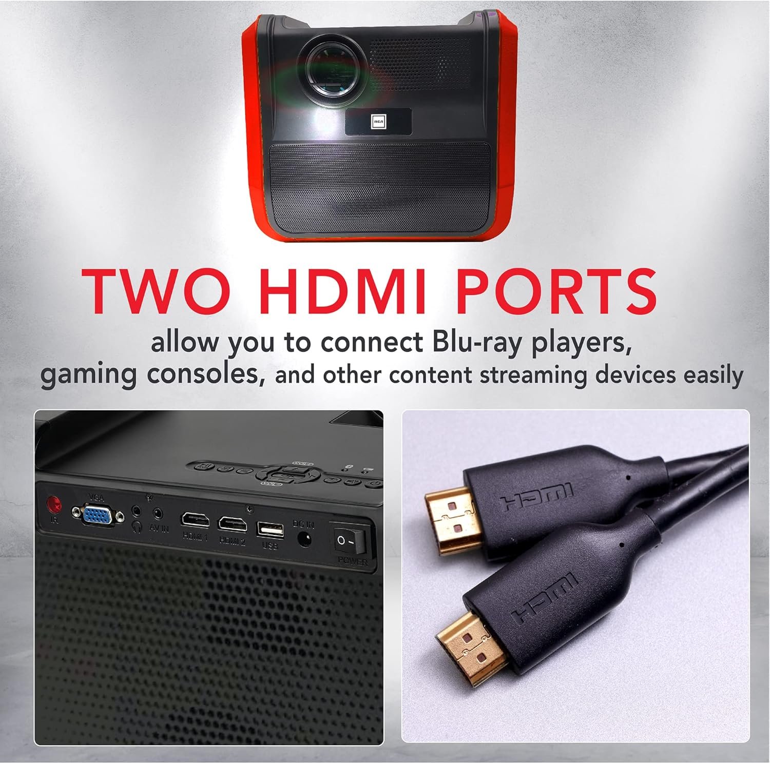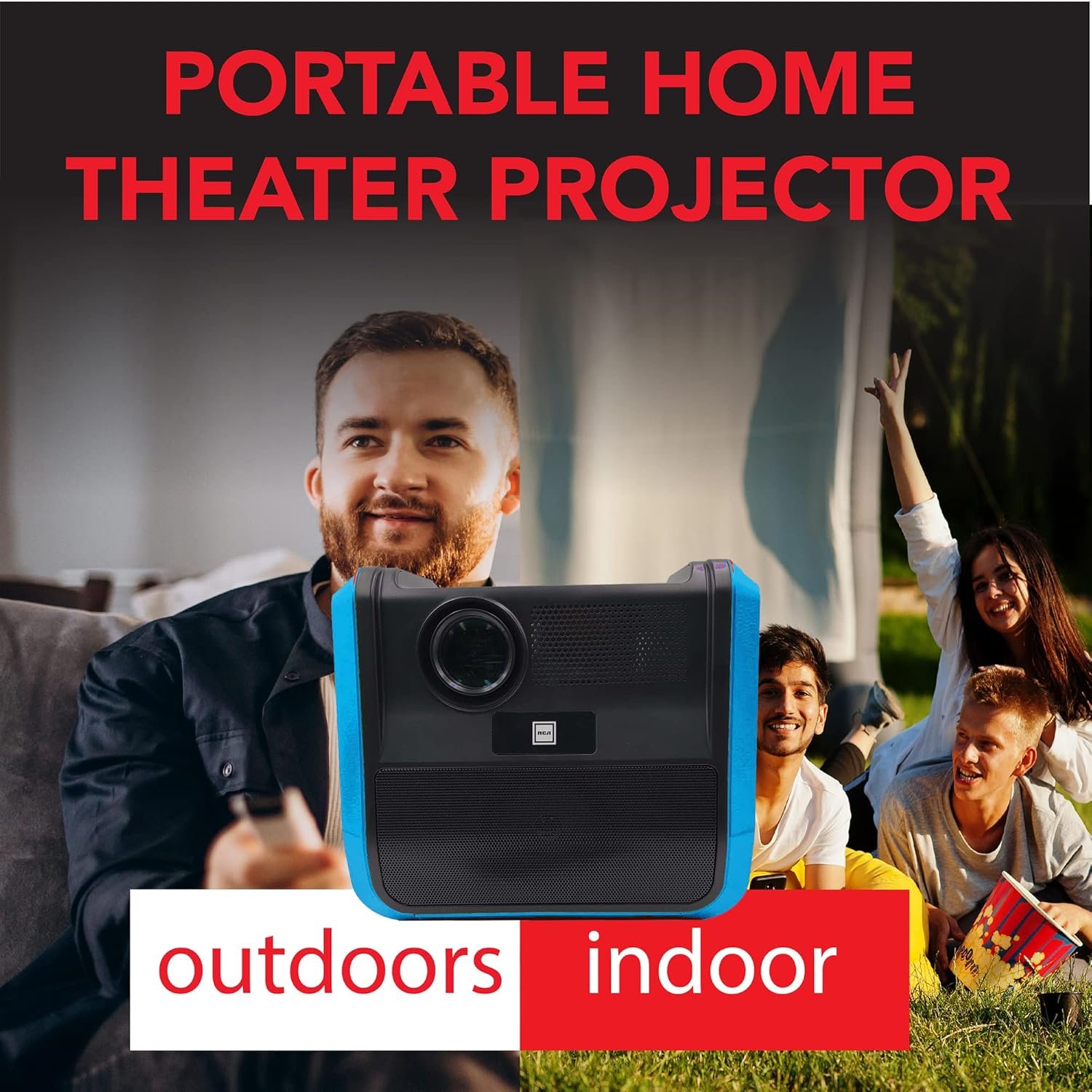 Projecteur portable Système de divertissement Home Cinéma, batterie longue durée par charge – interieur et extérieur; marque RCA, rechargeable, haut-parleurs – Profitez sans aucun câble en déplacement – Téléphone/clé/PC.